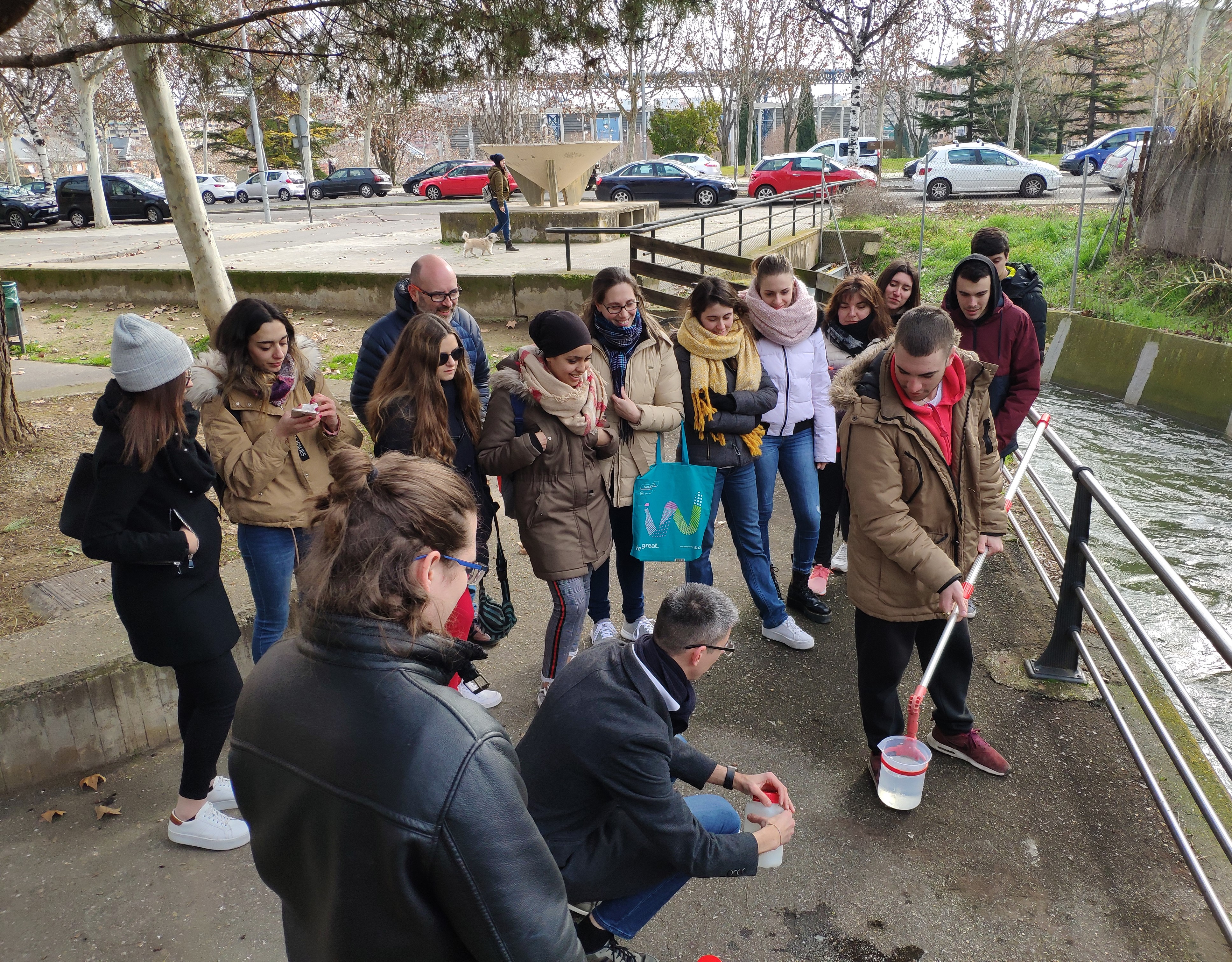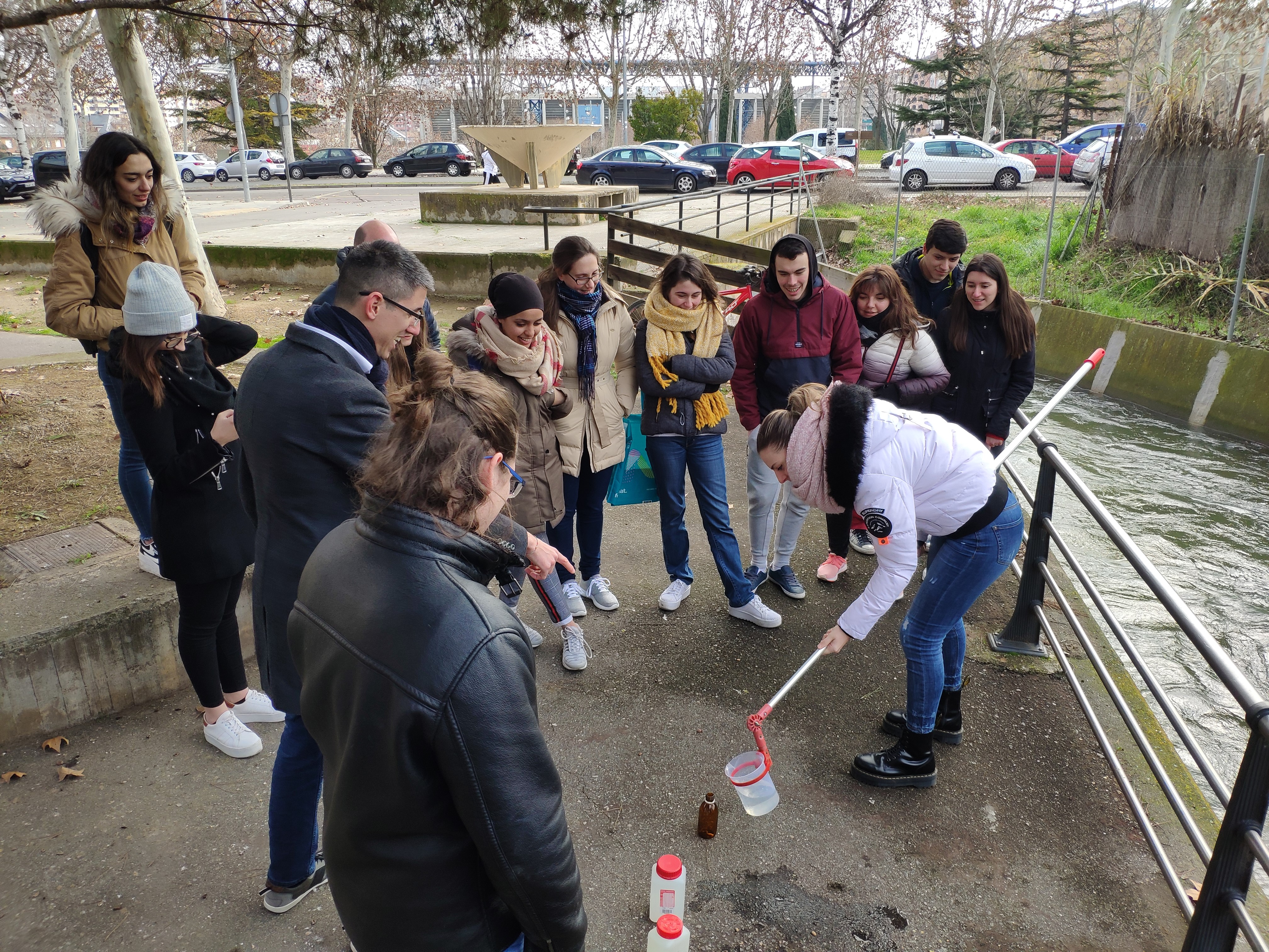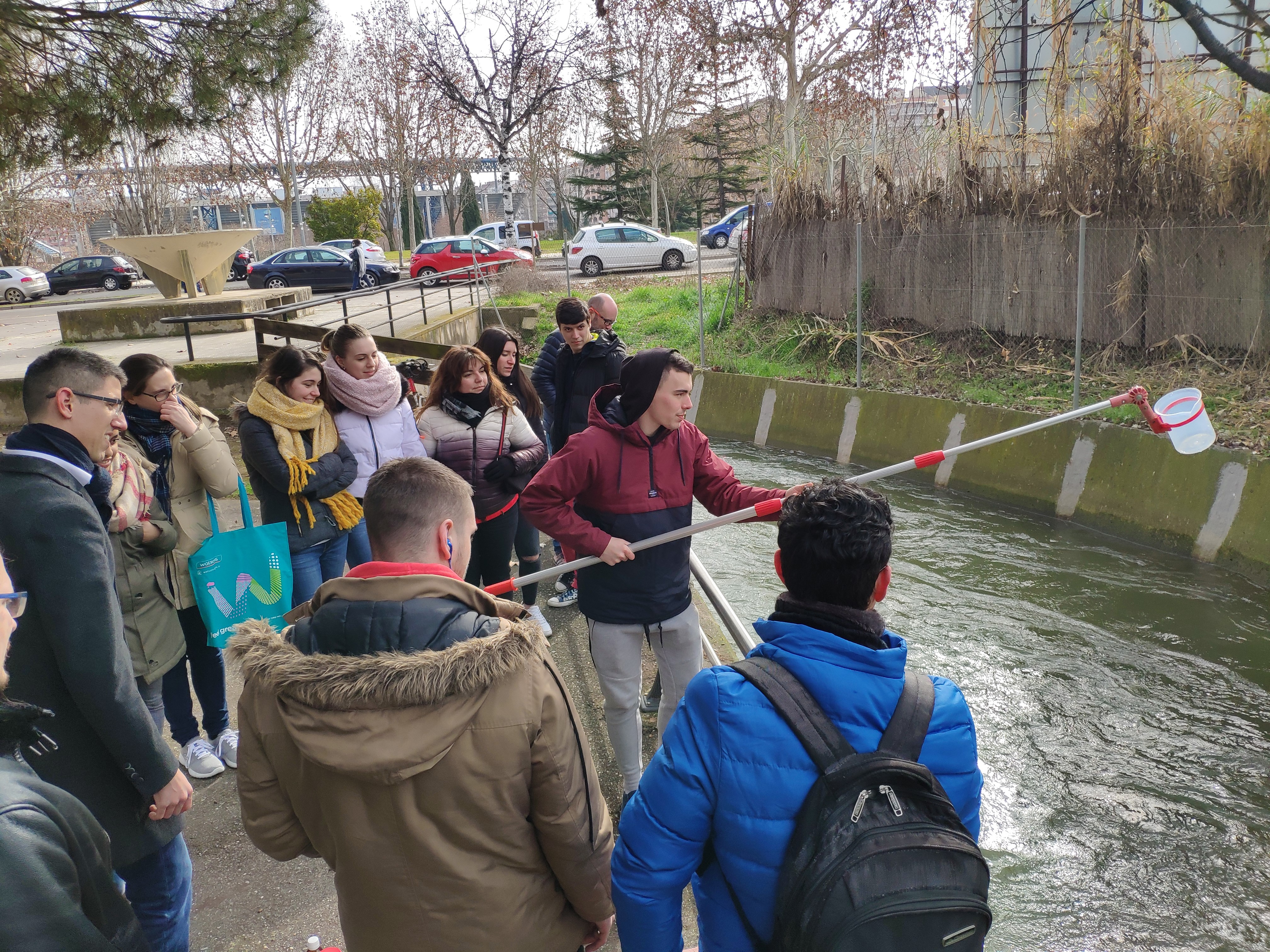 El Cristian, tècnic de l’empresa ILERSAP, ens ha parlat de com s’ha de prendre la mostra d’aigua, com s’ha d’etiquetar i com s’ha d’emmagatzemar a fi de que les analítiques que farem després al laboratori siguin fiables i representatives. Hem acabat fent una presa de mostra real al Canal de Pinyana per practicar amb els equips de mostreig de l’empresa.