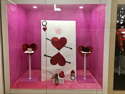 Han guarnit el vestíbul amb tota aquesta bonica decoració d’Alícia al País de les meravelles. També han aprofitat la festivitat de Sant Valentí per preparar els aparadors de la 3a planta i mireu quin és el resultat.