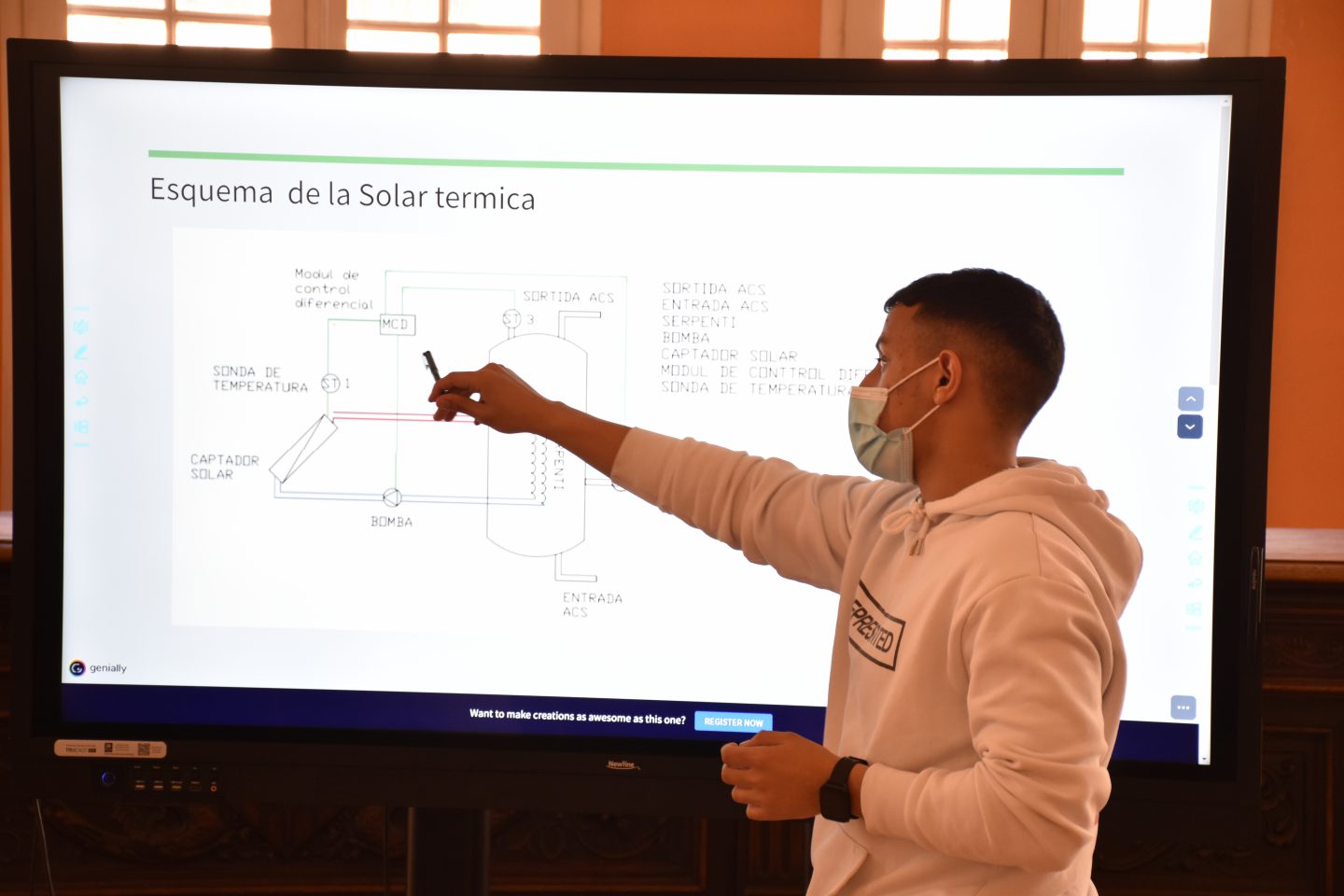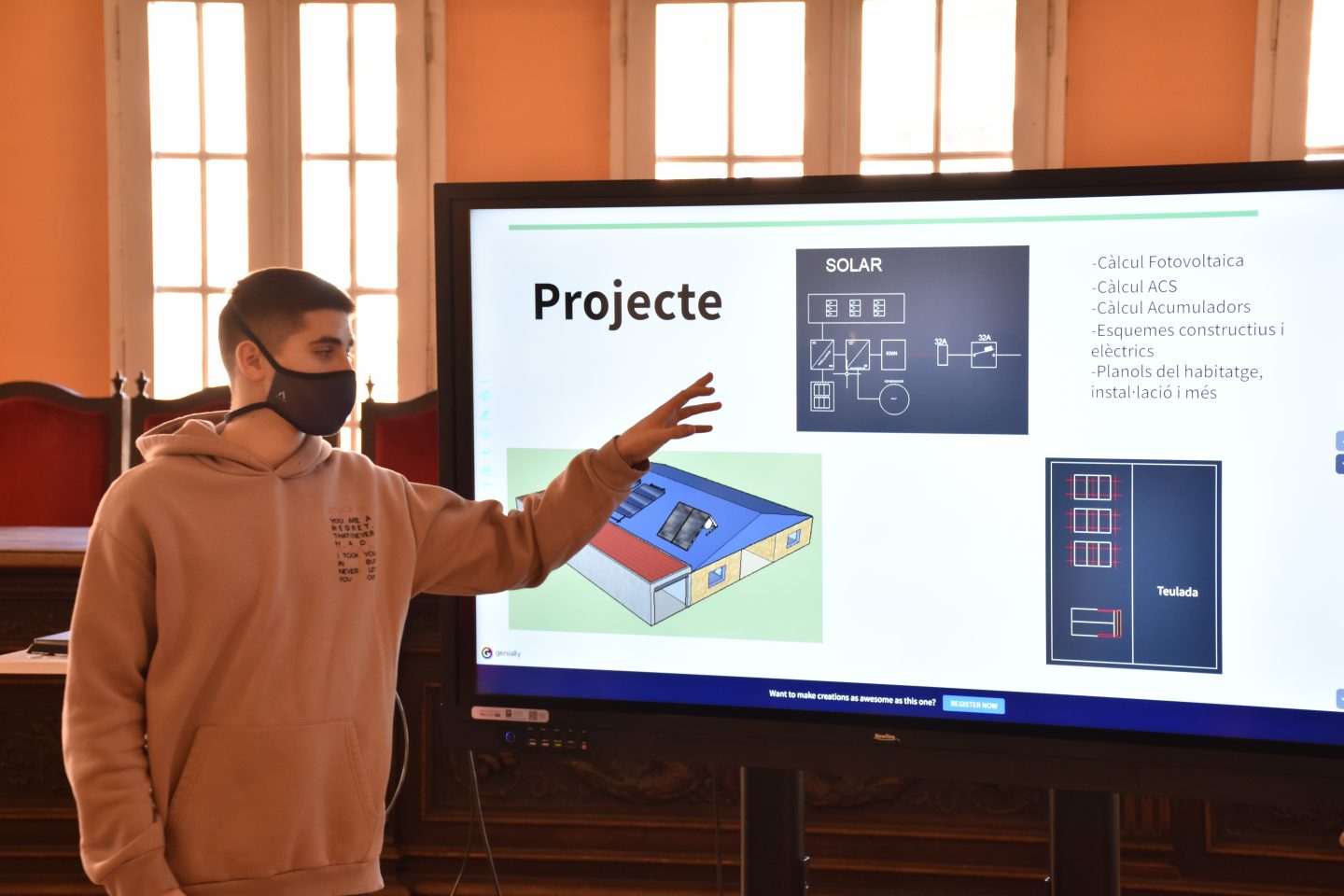 Divendres 18 de febrer ha estat un matí d’emocions i nervis. Molta feina i esforços que han donat com a resultat el 3r projecte. Un repte en el que el nivell d’exigència ha estat superior als anteriors projectes i que ha permés veure l’evolució d’aquesta promoció. L’exposició ha comptat amb l’acompanyament i mentoratge de l’empresa GSE Eficiència Energética representada pel seu Director General, el senyor Roger Vidal González.