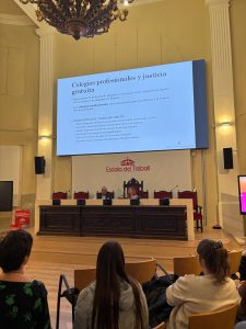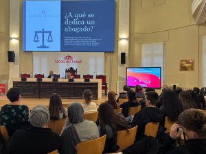 També dins d’aquesta Setmana Juríìca, l’alumnat va assistir a una xerrada a càrrec d’Andreu Mercadé, Diputat 4t de l’Il·lustre Col·legi de l’Advocacia de Lleida (ICALL), i Carme Solé, socis fundadors de Mercadé Advocats. Durant la seva intervenció, van exposar els requisits, les funcions i el recorregut professional de l’advocacia, destacant la importància de col·legiar-se i el paper de l’ICALL en el suport als professionals i l’Administració de Justícia.