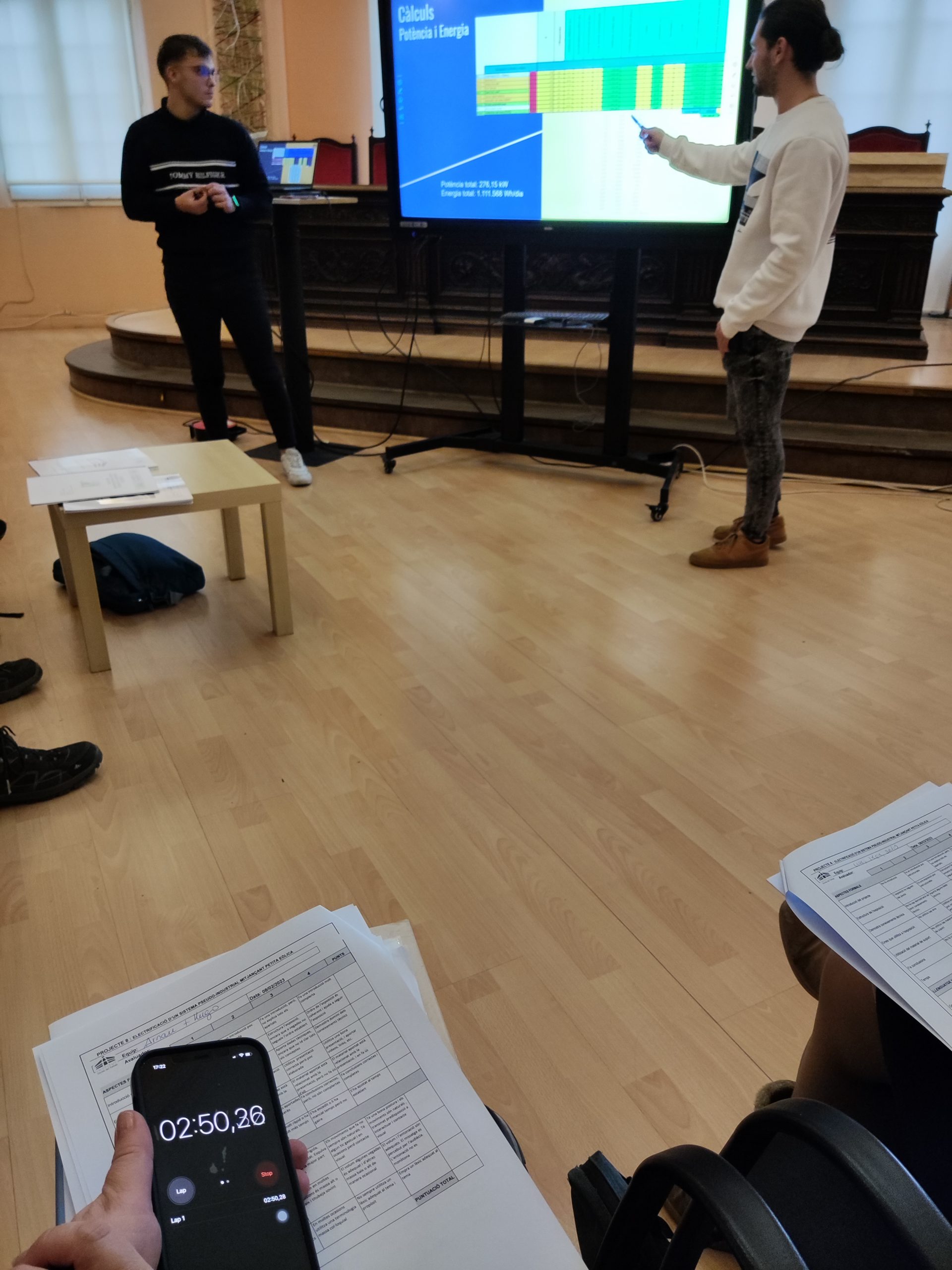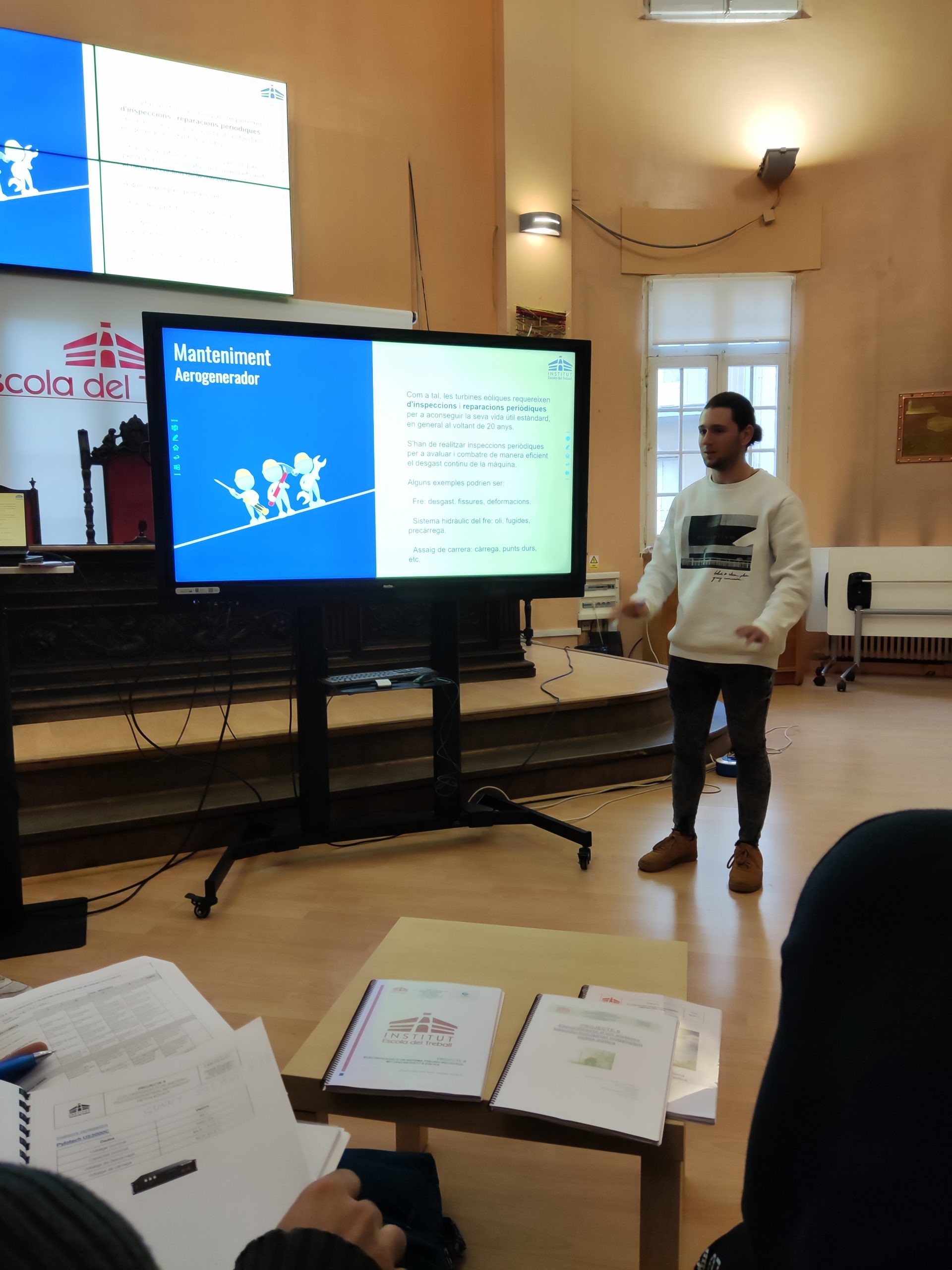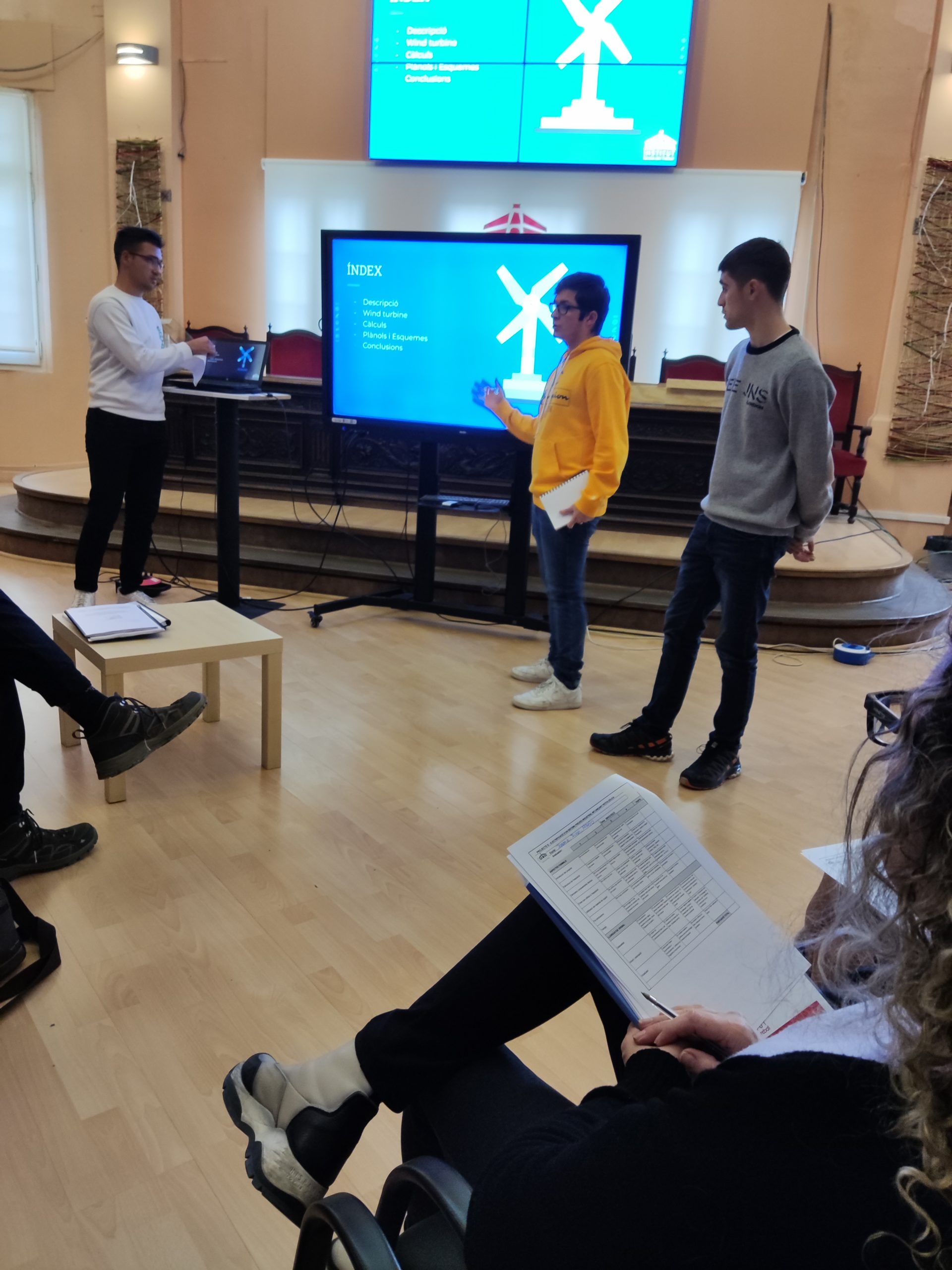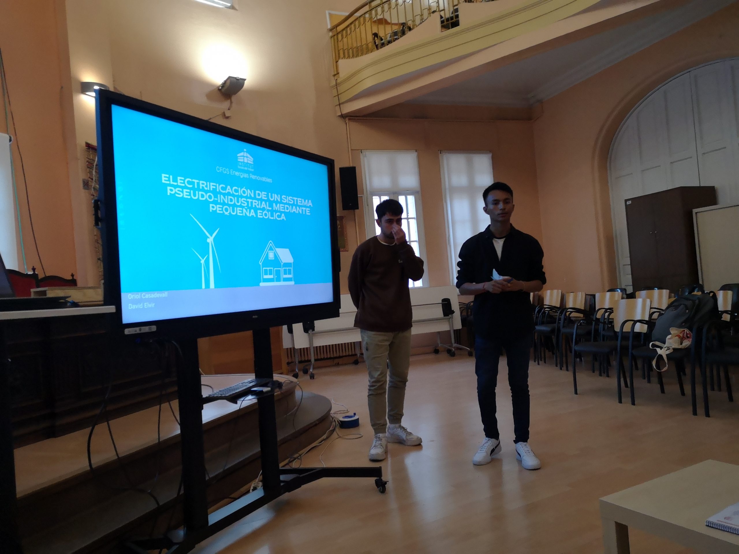 El projecte es va presentar en públic davant del sr Jaume Badia de l’empresa del sector d’energies renovables Badia Energies i l’equip docent. Els estudiants van explicar els detalls del seu projecte, que es va centrar en la instal·lació d’una petita eòlica en sistemes seudo industrials per subministrar energia elèctrica renovable.