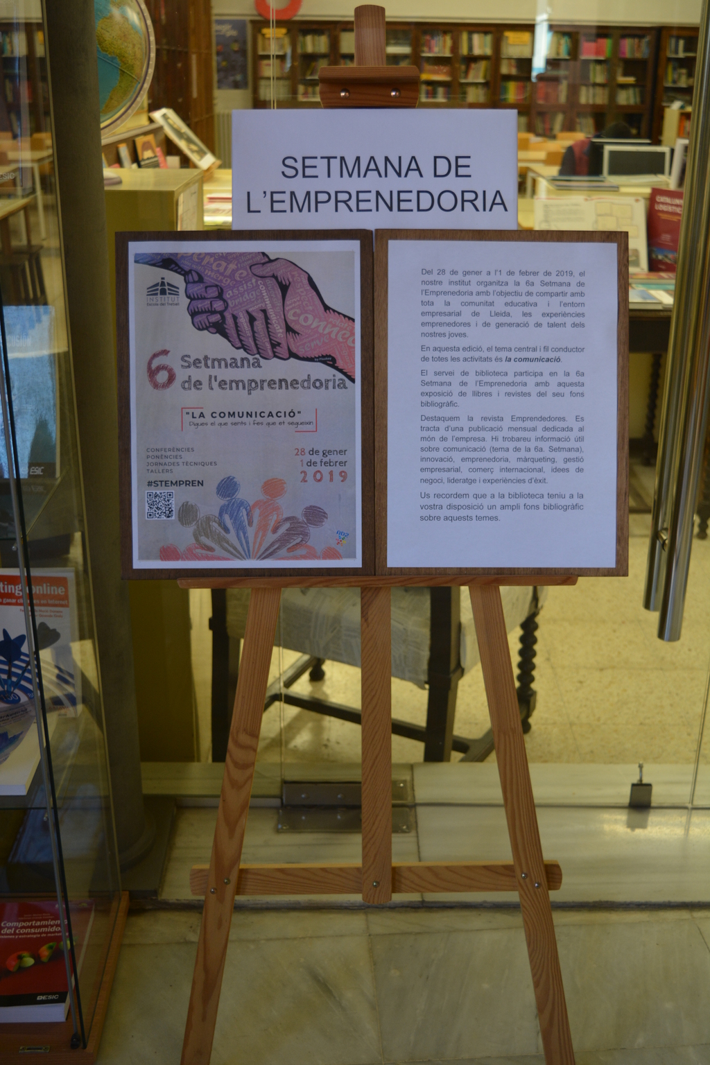 Del 28 de gener a l’1 de febrer de 2019, el nostre institut ha organitzat la 6a Setmana de l’Emprenedoria amb l’objectiu de compartir amb tota la comunitat educativa i l’entorn empresarial de Lleida, les experiències emprenedores i de generació de talent dels nostres joves.