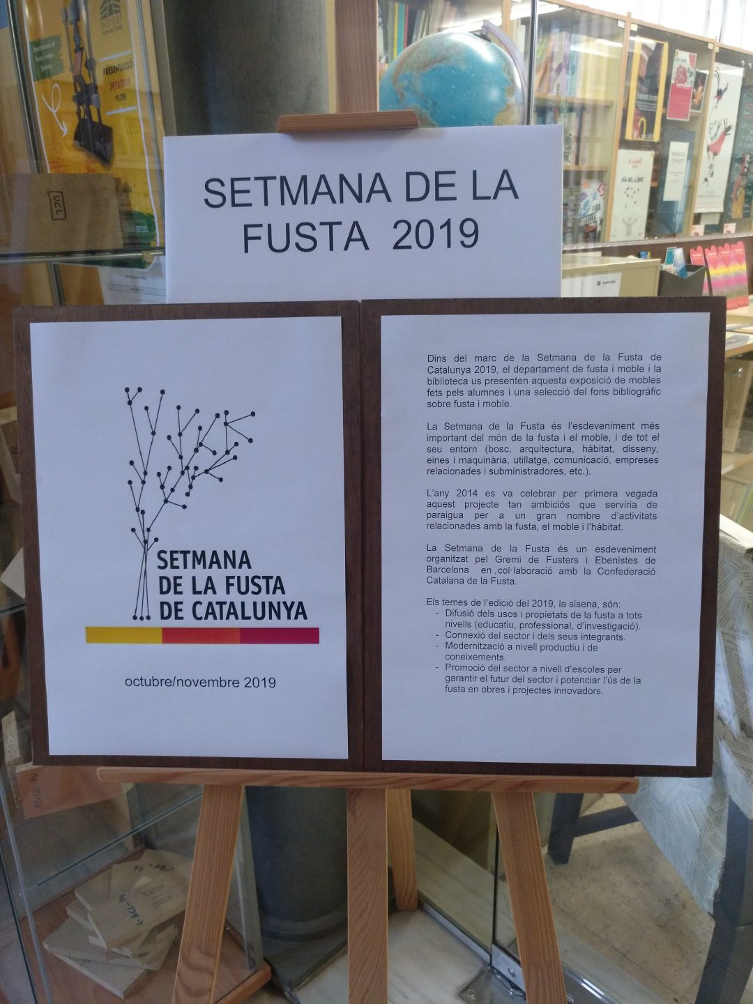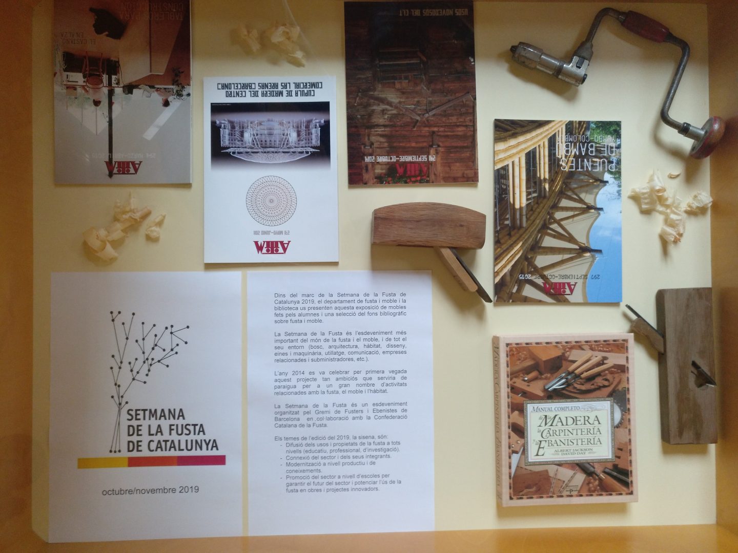 Dins del marc de la Setmana de la Fusta de Catalunya 2019, el departament de fusta i moble i la biblioteca us presentem una exposició de mobles fets pels alumnes i una selecció del fons bibliogràfic sobre fusta i moble.