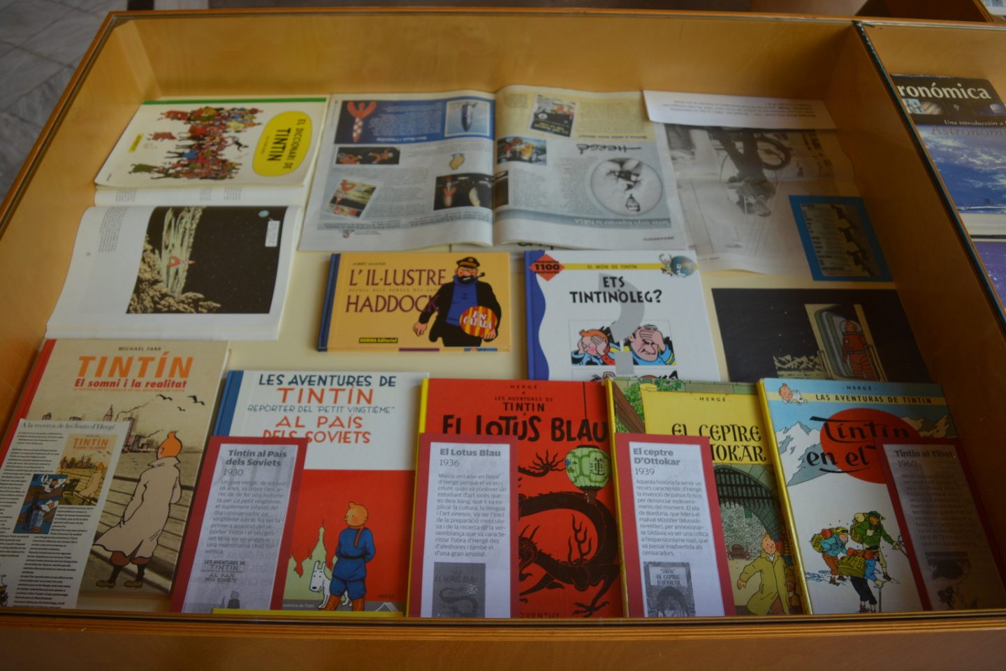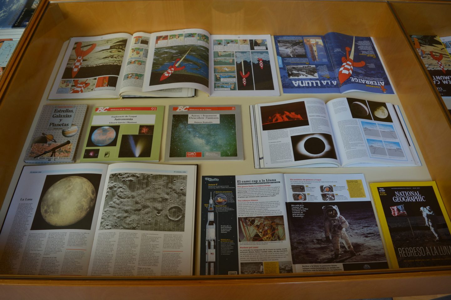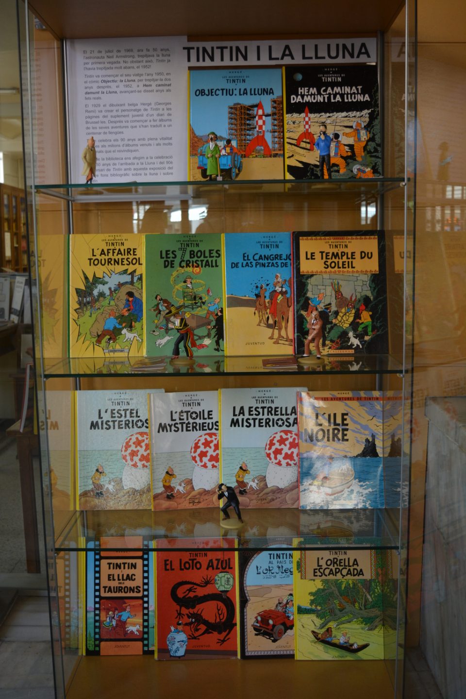 Des de la biblioteca ens hem afegit a la celebració dels 50 anys de l’arribada a la Lluna i del 90è aniversari de Tintin amb una exposició del nostre fons bibliogràfic sobre la lluna i sobre Tintin.