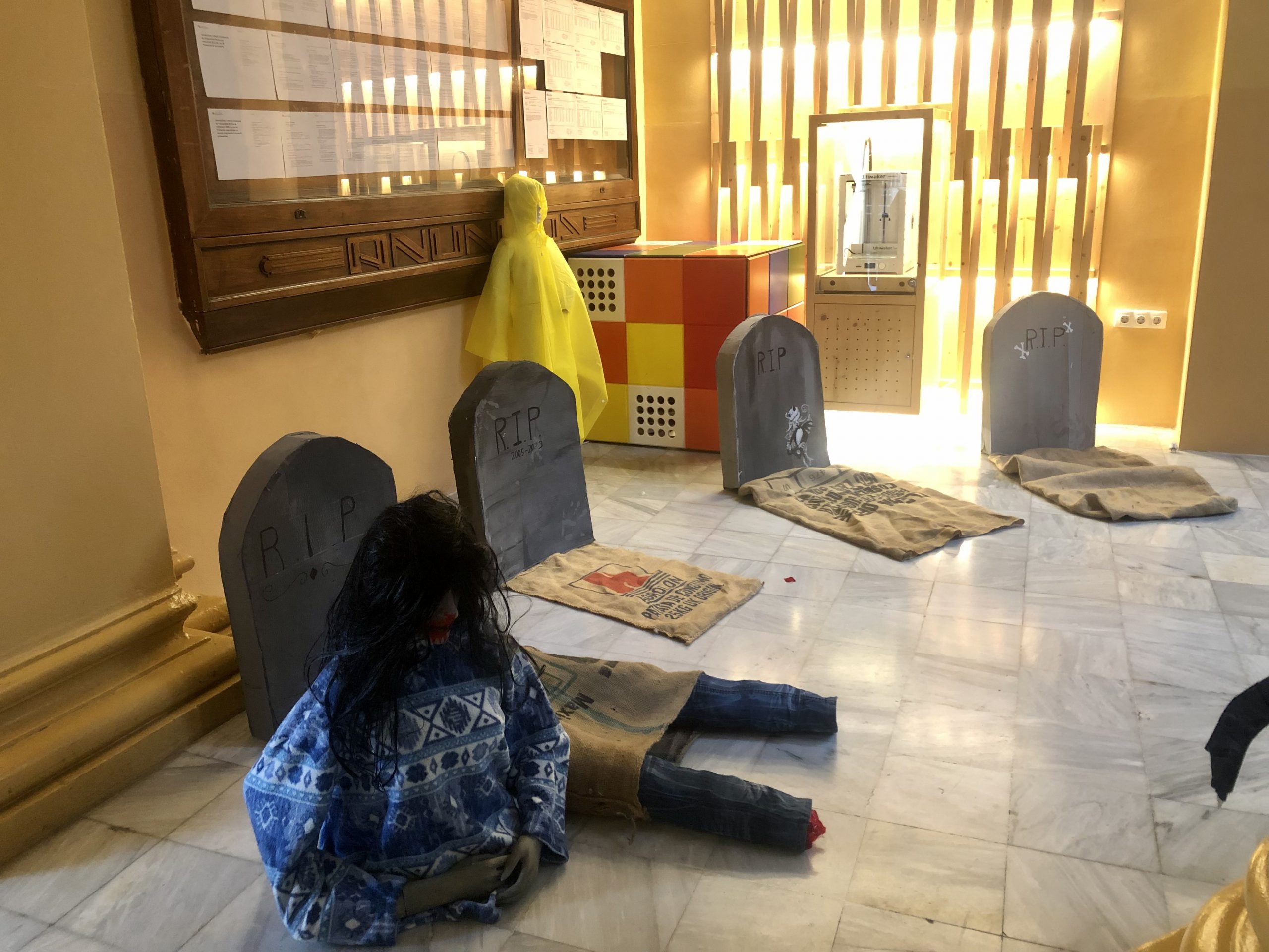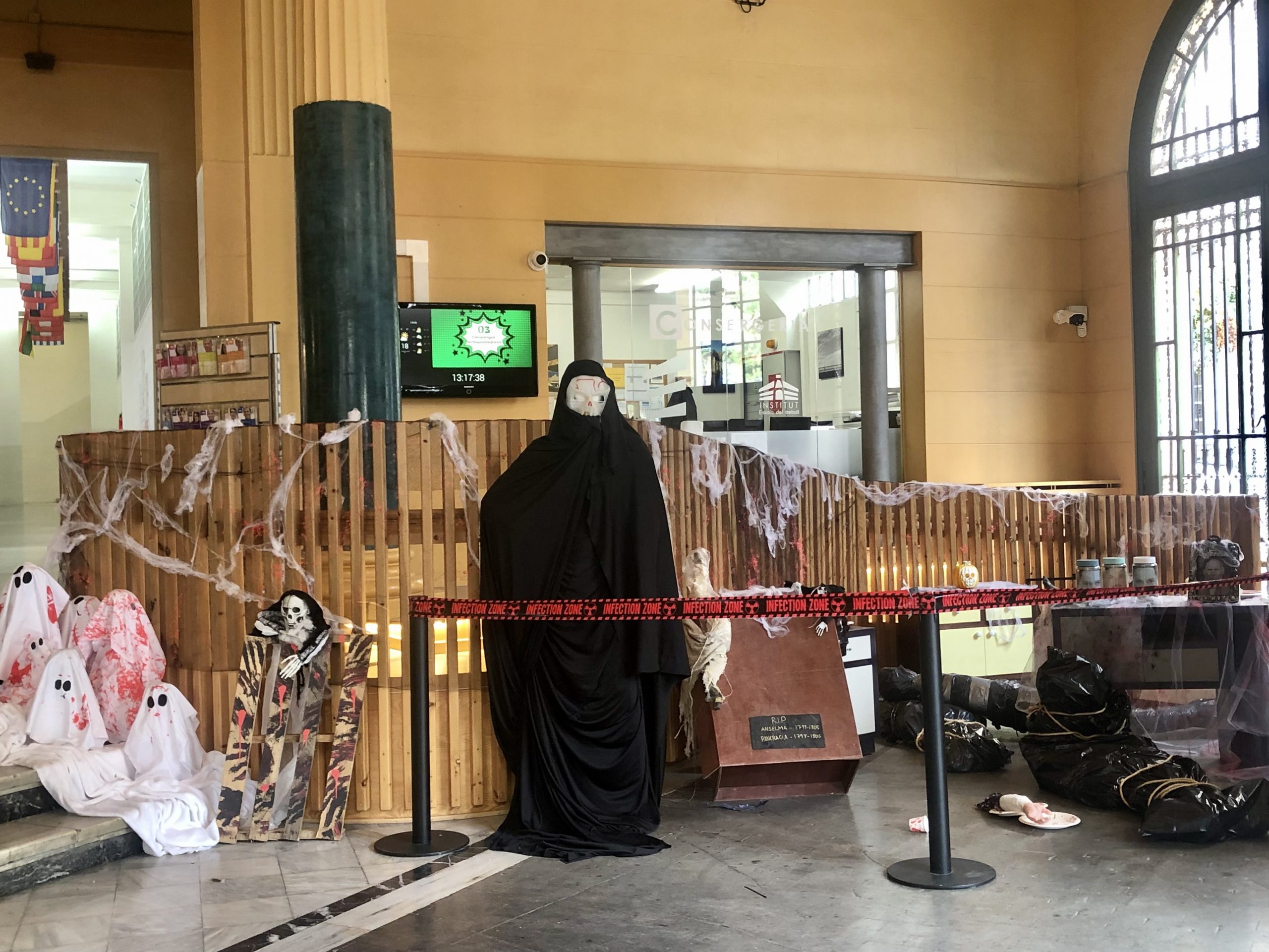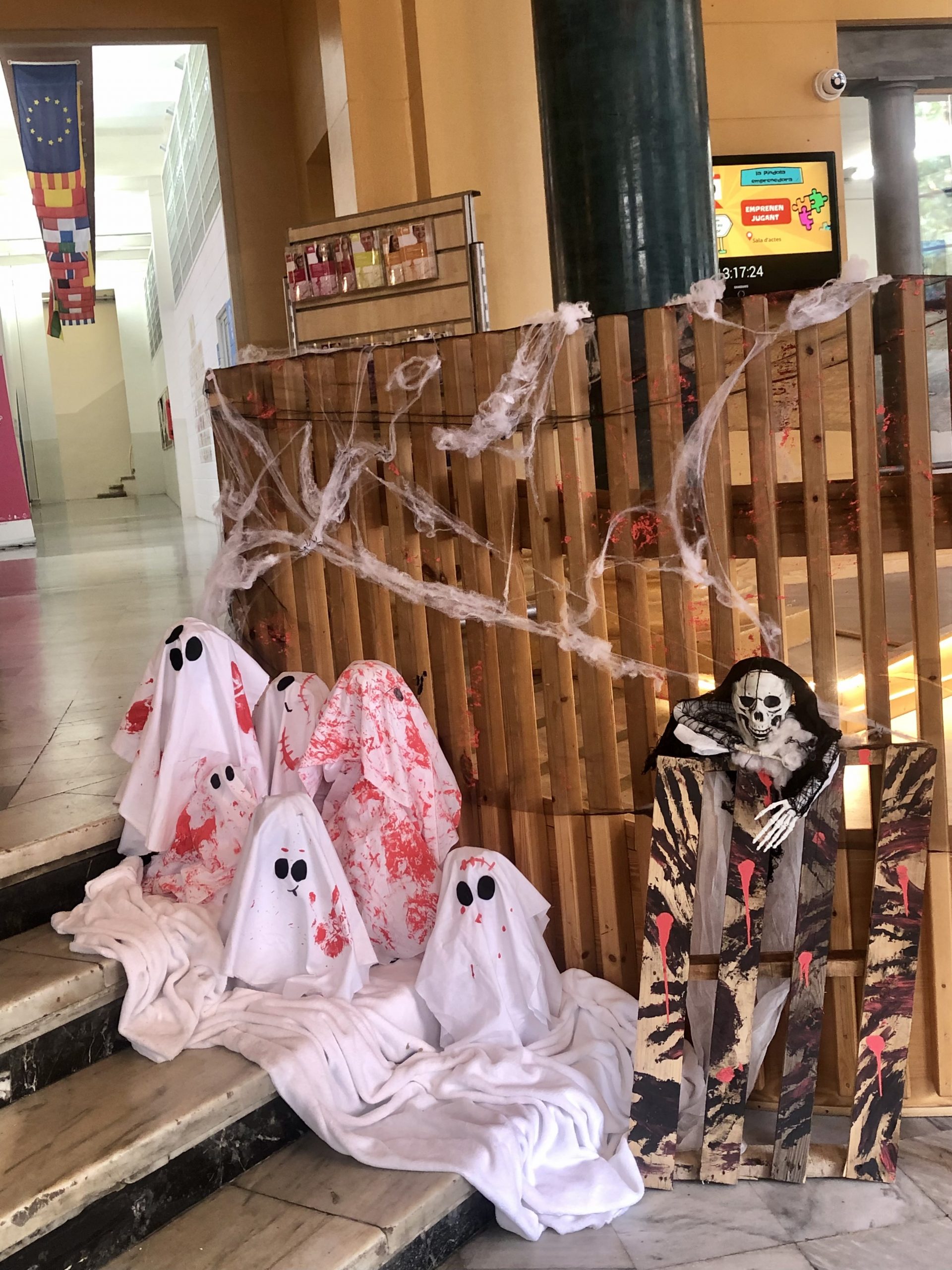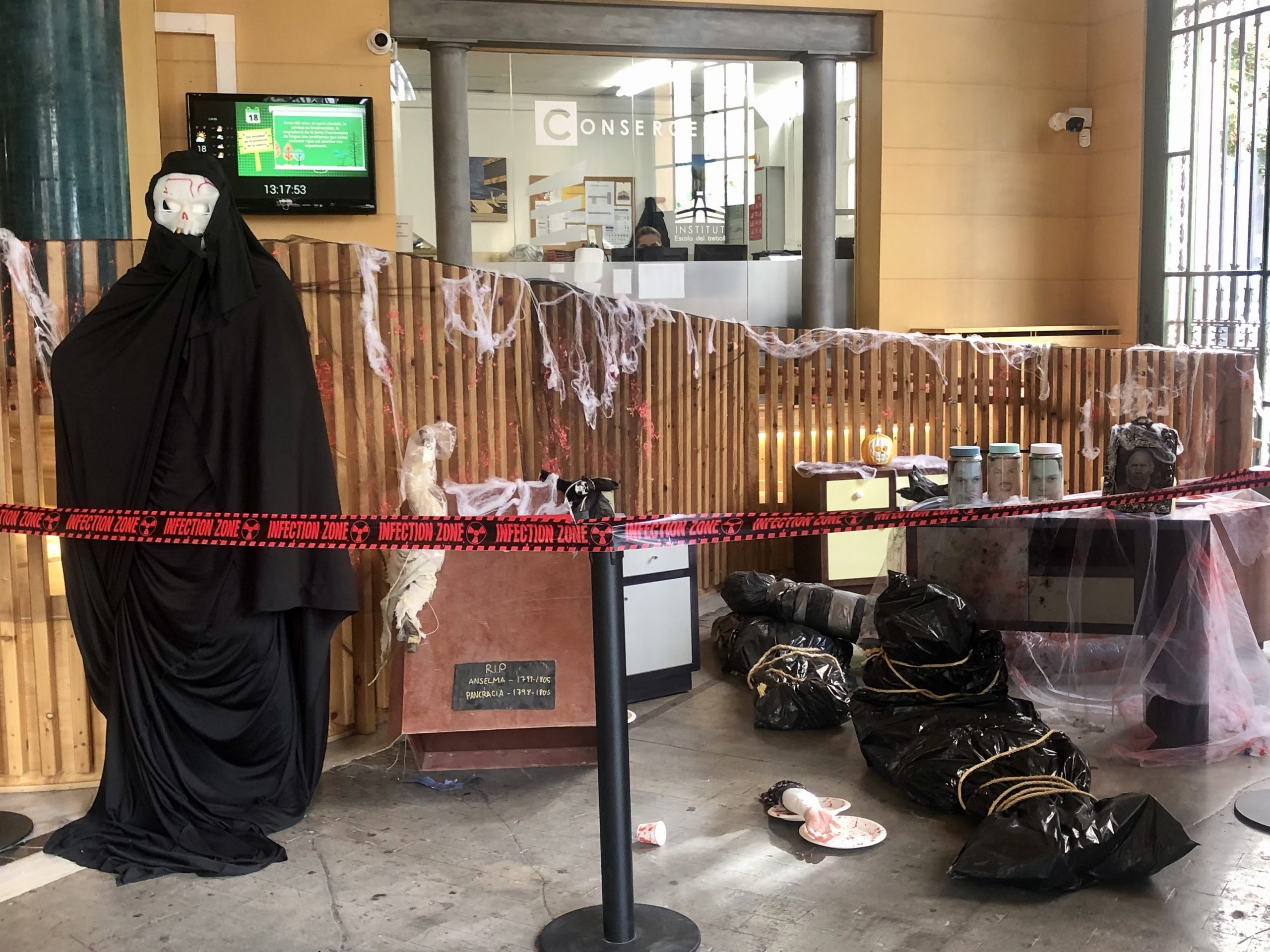 Aprofiteu i passeu-vos per l’institut per viure l’esperit de Halloween i la Castanyada amb nosaltres. I per si no podeu veure-ho en persona, us deixem un tastet de fotos amb el que han fet. La veritat és que ens han deixat sense paraules amb aquesta decoració.