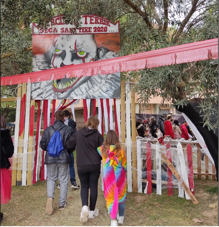 Després d’aquest esplèndid inici de dia,vam tenir l’oportunitat de gaudir del Túnel del terror organitzat pels veïns del Secà, els quals agraïm el tracte rebut i la dedicació en la nostra visita, on vam tindre l’ocasió de viure una experiència diferent, terrorífica, i vam poder divertir-nos fotografiar-nos en un ambient distès i desenfrenat.