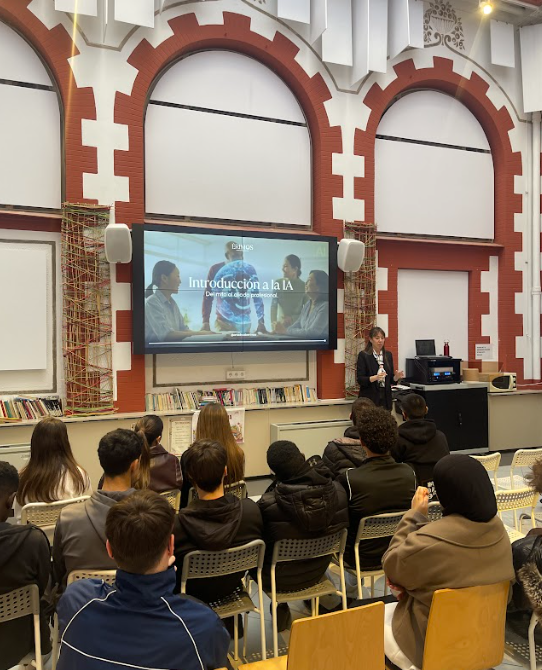L’alumnat del centre ha participat en una sessió centrada en les eines d’aplicació pràctica de la intel·ligència artificial, amb l’objectiu de descobrir com aquesta tecnologia pot contribuir a optimitzar i agilitzar molts processos en diferents àmbits professionals.