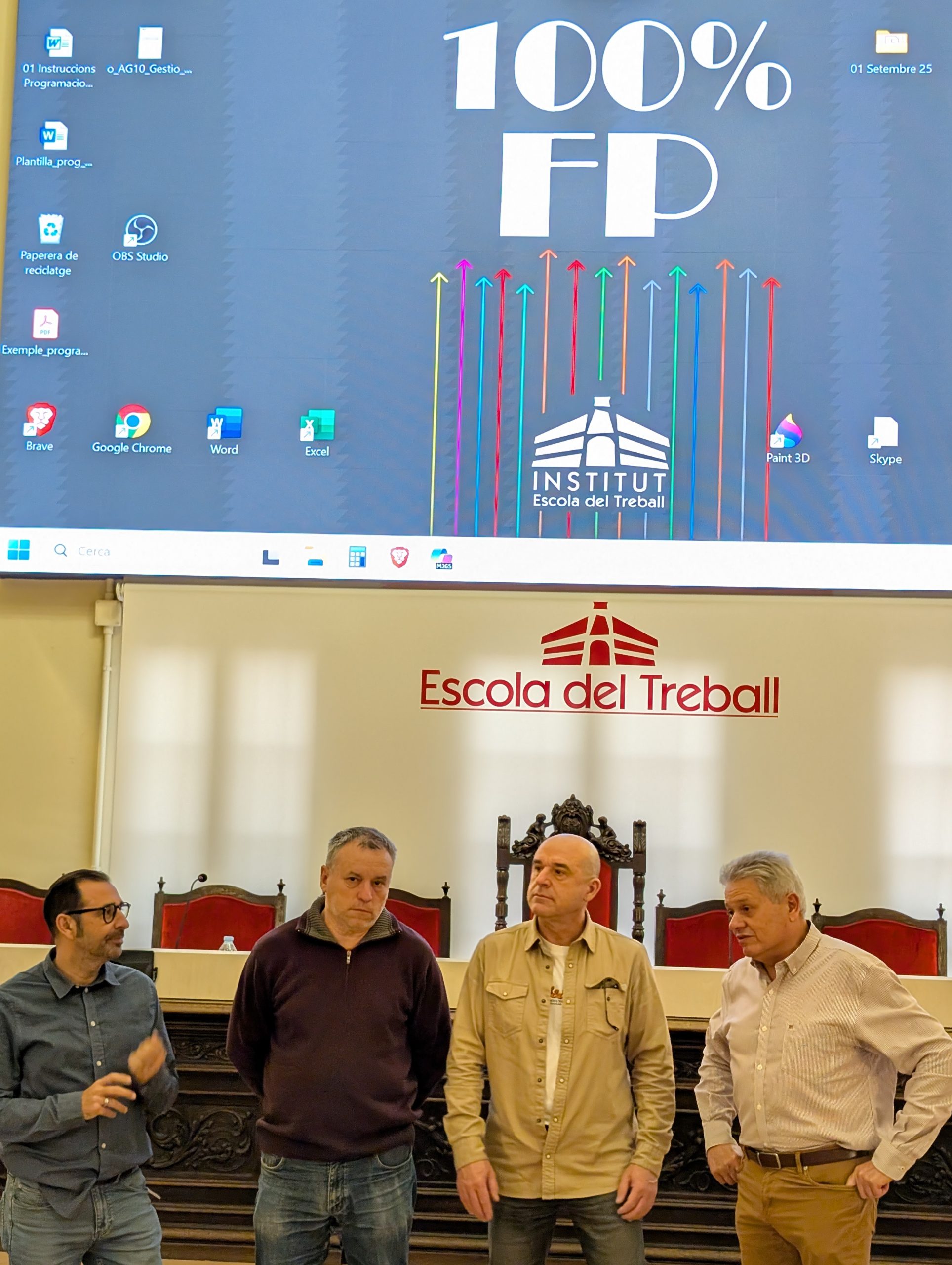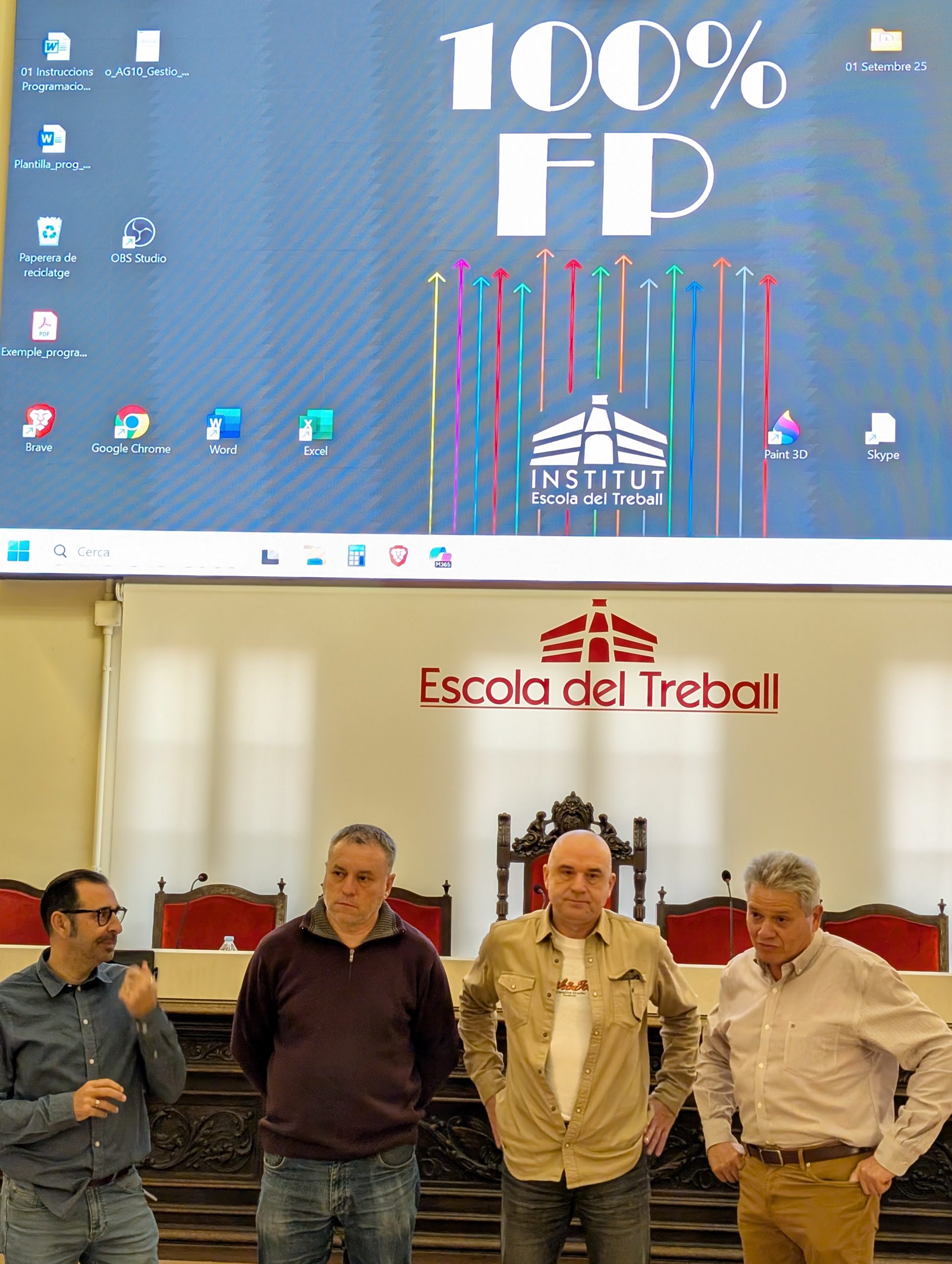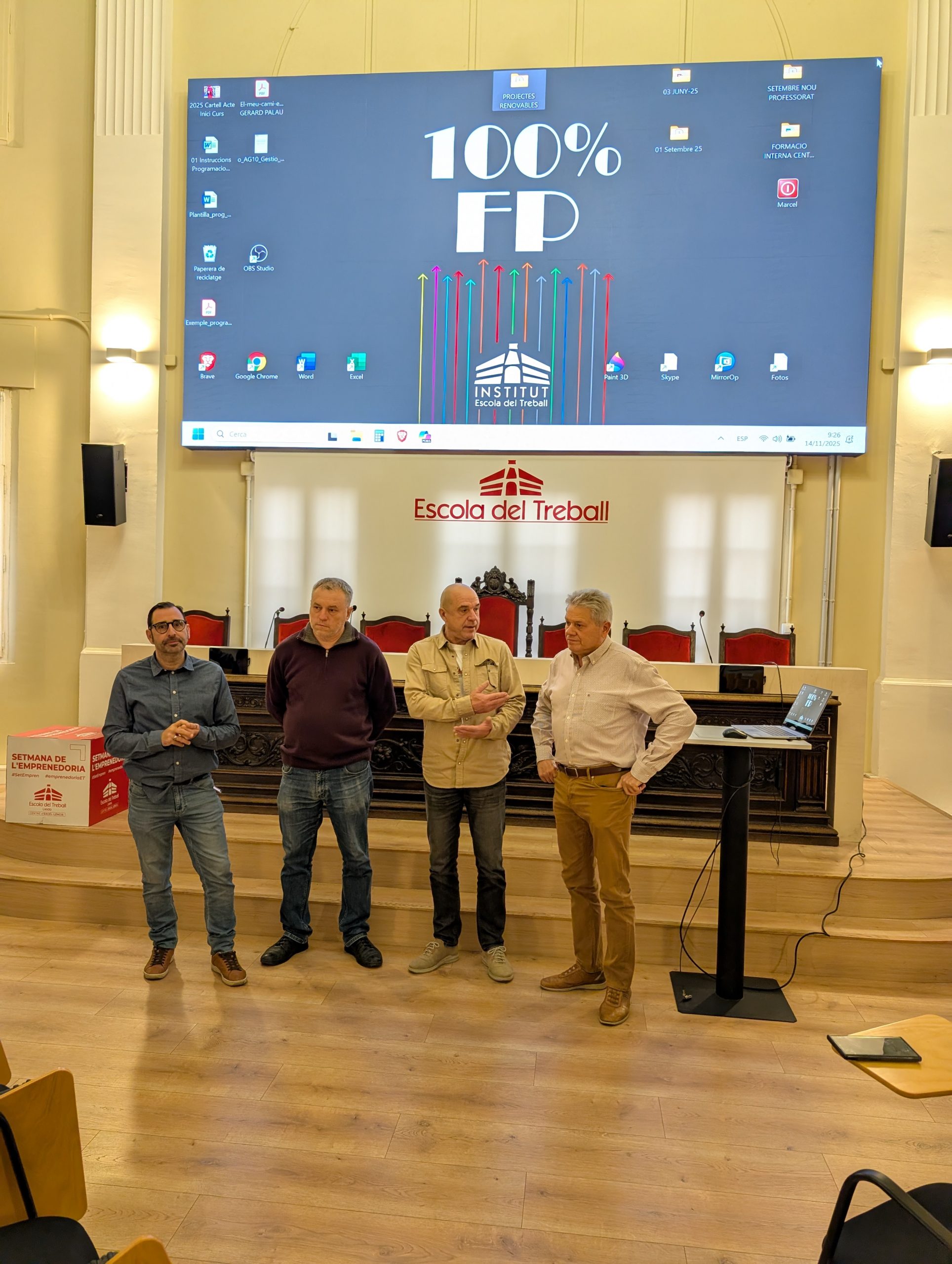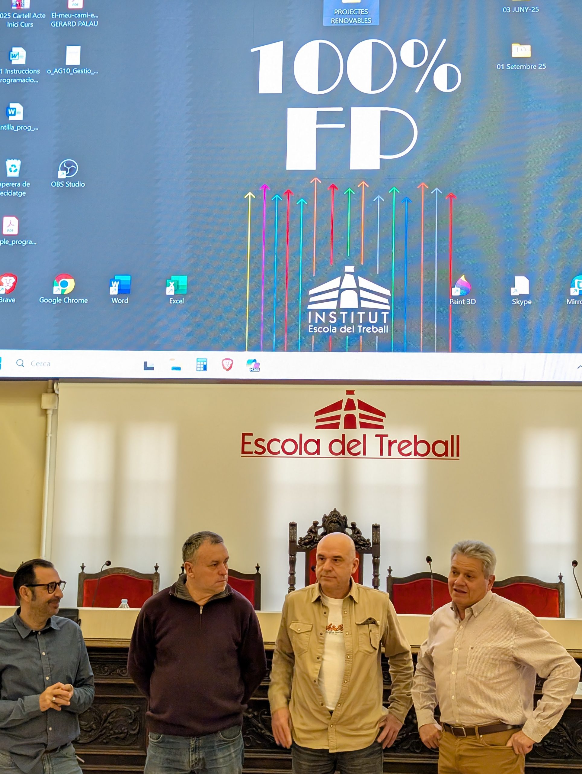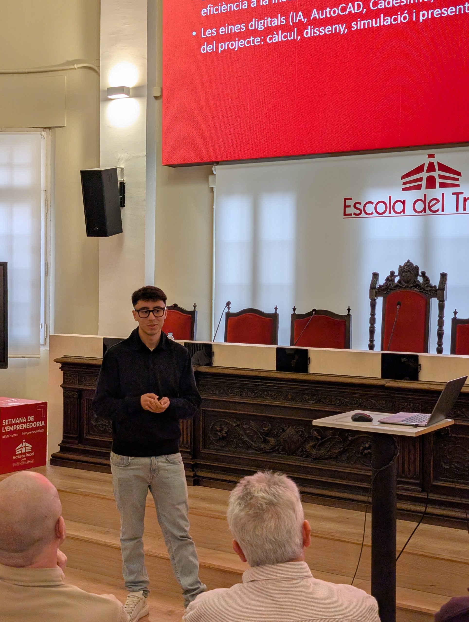 L’alumnat de primer curs del cicle formatiu de grau superior d’Energies Renovables de l’Escola del Treball de Lleida ha presentat recentment el Projecte 1: Electrificació d’un habitatge, en un acte celebrat a la històrica Sala d’Actes del centre. L’esdeveniment ha comptat amb l’assistència de l’equip docent del cicle i amb la presència destacada de professionals referents del sector elèctric, que han valorat i orientat els projectes des de la seva experiència.