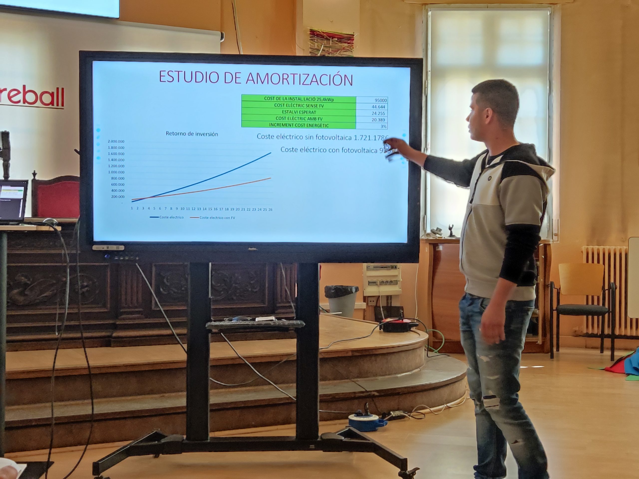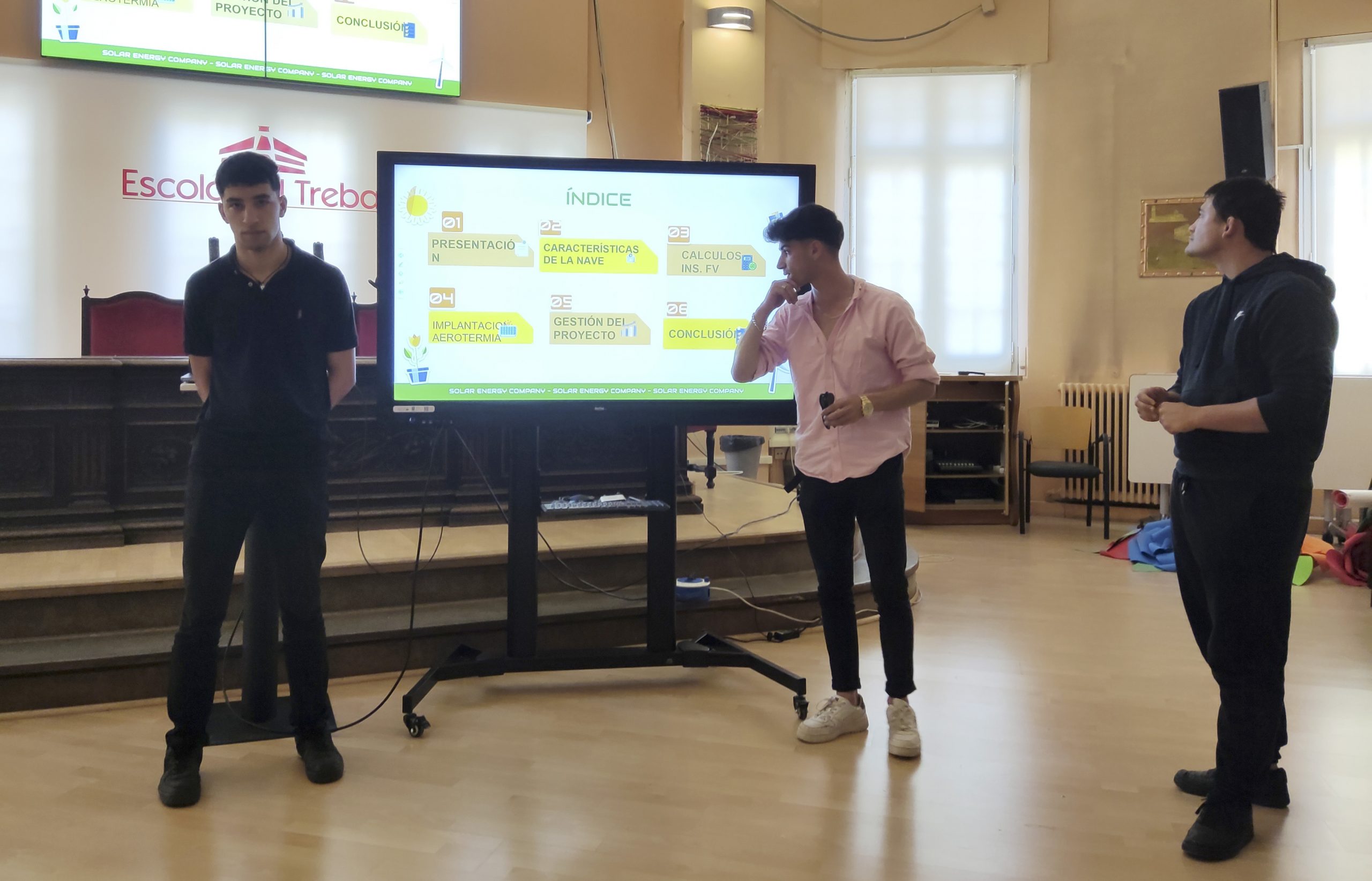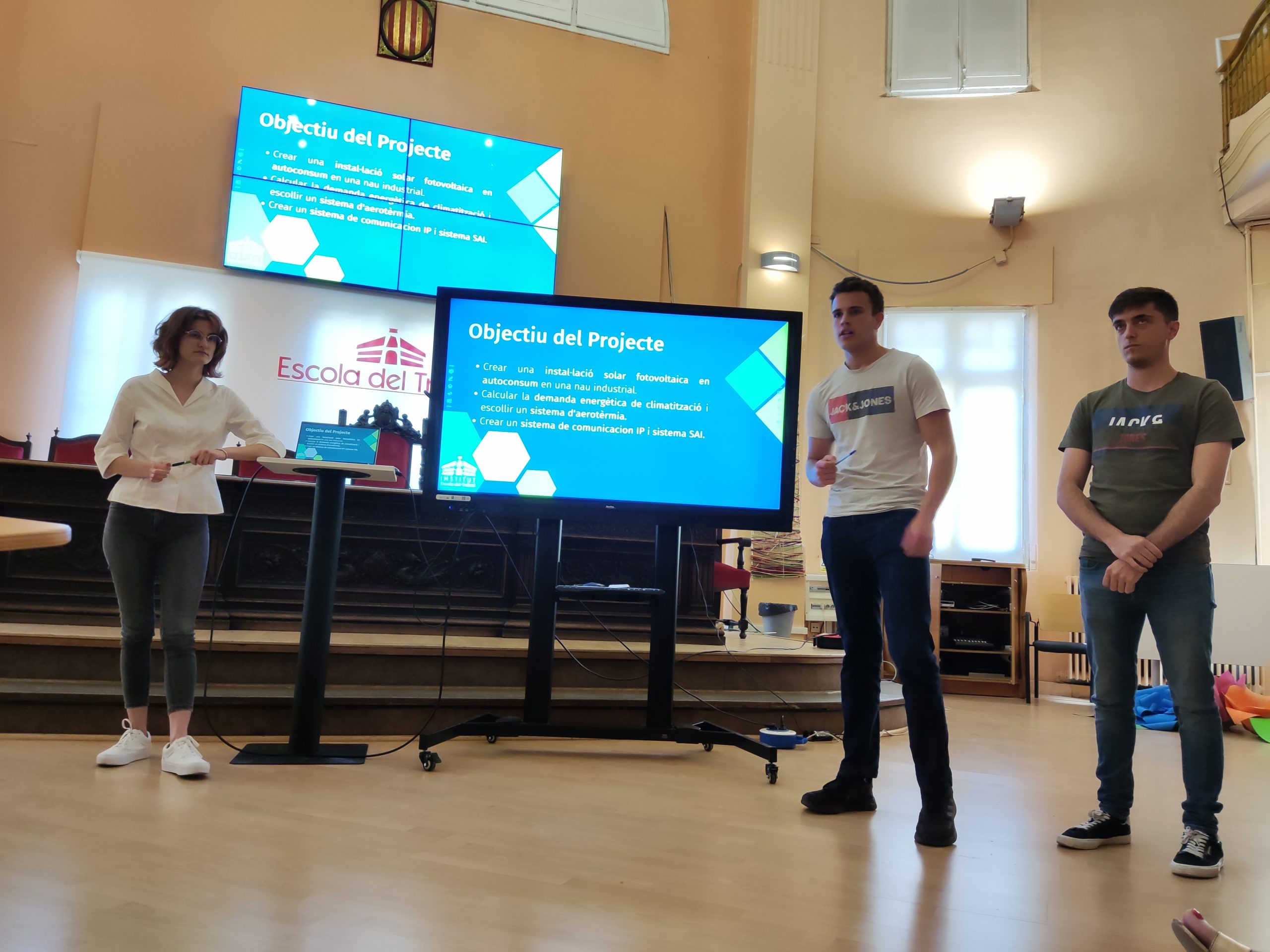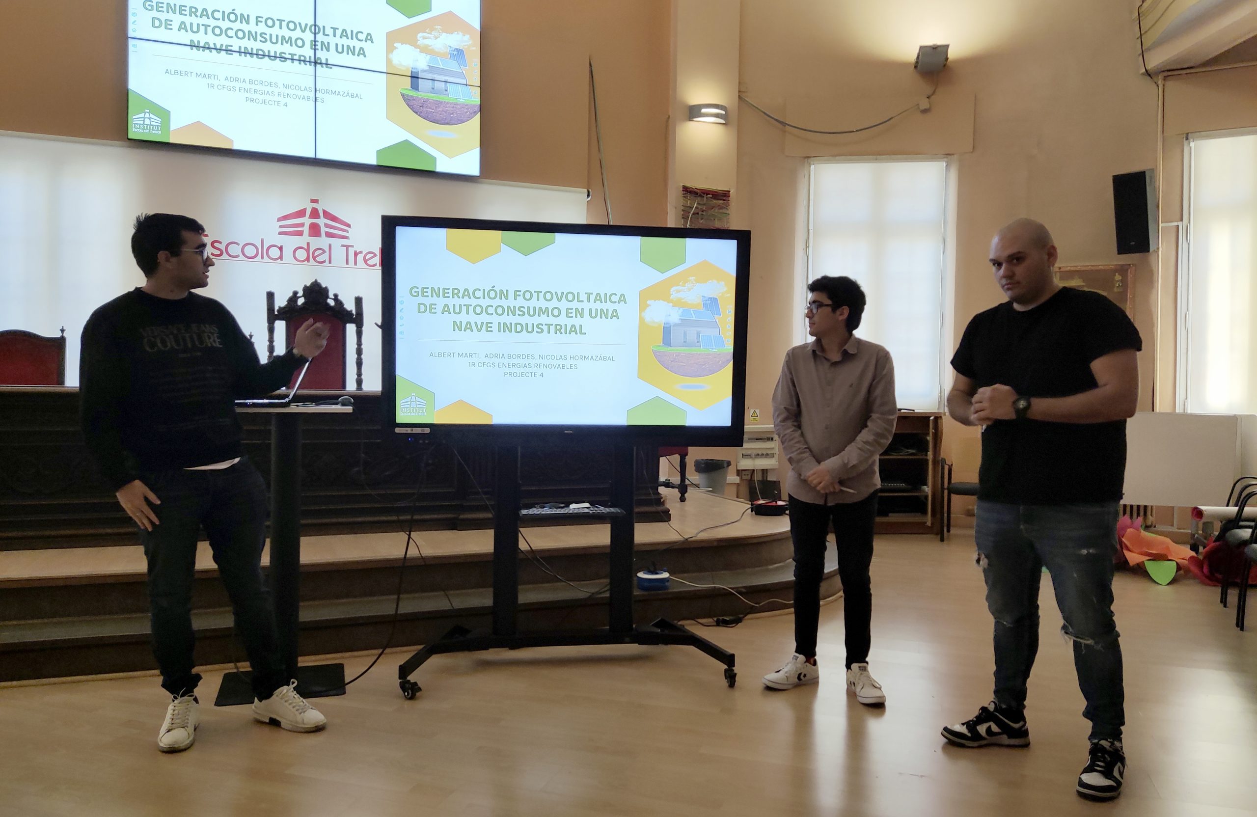 El passat dimarts 24 d’abril la Sala d’Actes de l’Escola del Treball va acollir les presentacions orals del P4 “Generació Fotovoltaica en modalitat d’Autoconsum en una nau Industrial” de l’alumnat de la promoció 22-23 del 1er curs del CFGS d’Energies Renovables